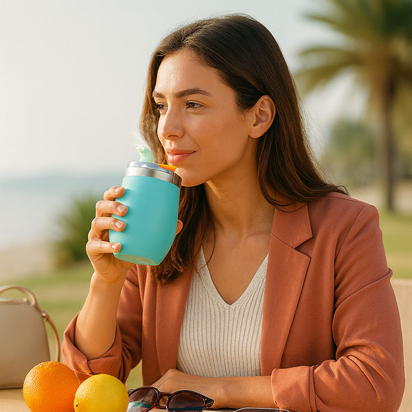 • Nomadz’Kup – La tasse isotherme qui garde vos boissons chaudes jusqu’à 8 h et froides jusqu’à 12 h, parfaite pour emporter votre jus, café ou thé.
