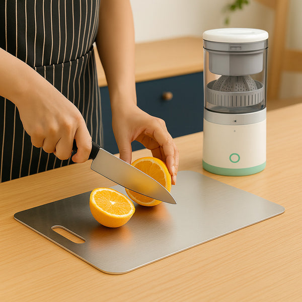• Inokzh Board – La planche à découper en acier inoxydable, hygiénique et durable, pour préparer vos fruits en un geste.