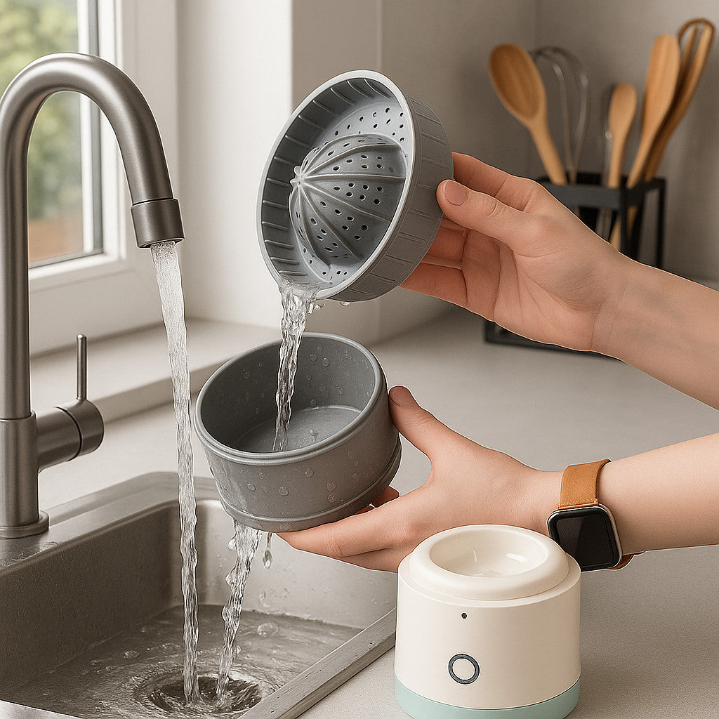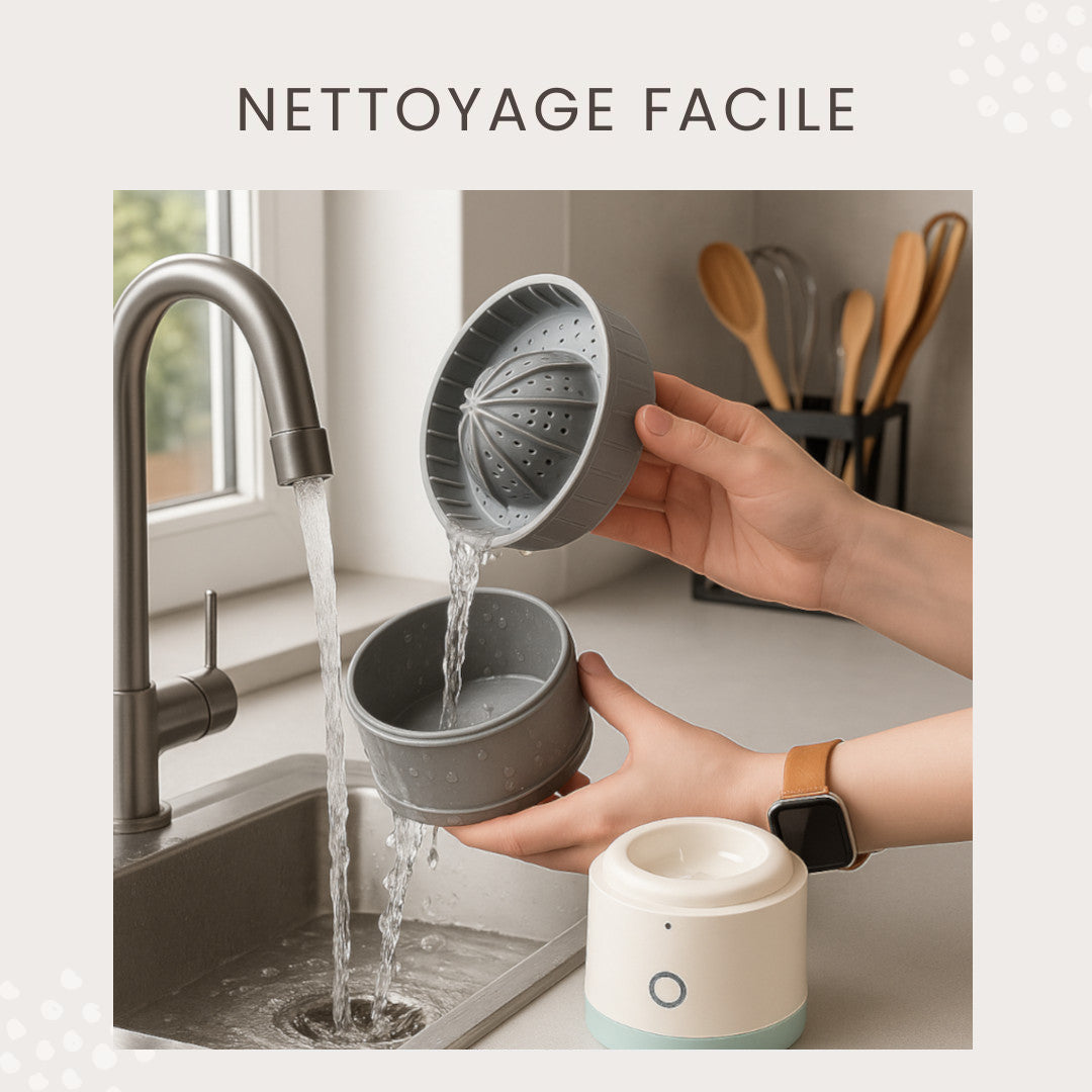 ZheJuicer a été pensé pour simplifier chaque étape, y compris celle que l’on redoute souvent : le nettoyage. Grâce à ses pièces amovibles et à sa conception sans recoins compliqués, il se démonte en quelques secondes et se rince facilement sous l’eau. Les surfaces lisses et les matériaux résistants empêchent les résidus de s’accrocher, pour un entretien rapide et hygiénique. Finie la corvée de nettoyage après chaque jus : avec ZheJuicer, vous gagnez du temps sans sacrifier la propreté.